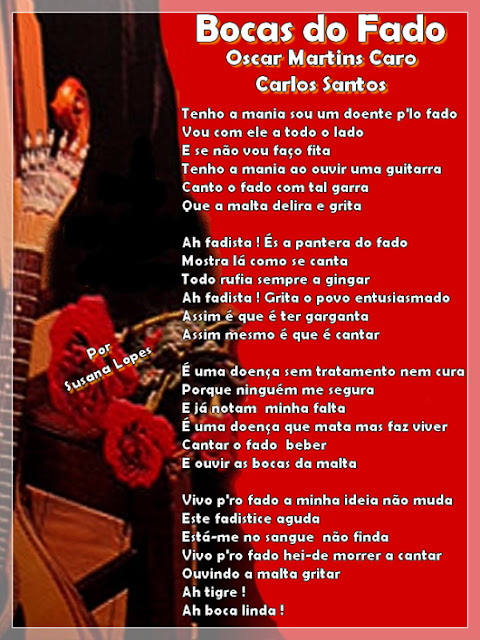 - Sou português, filho de pais incógnitos. Nasci em Lisboa, percorri Portugal e pela mão de Amália Rodrigues, corri mundo. Estou em toda a parte em que haja um português. Sou um capítulo de cultura portuguesa e a expressão máxima de Portugal. O Menor foi meu pai e minha mãe, o Mouraria é meu amante e casei-me com o Corrido. Tenho muitas namoradas, as Meninas Músicas filhas de distintos pais, os Meninos Poemas também namoram com elas, amo os Poetas ♥ ! Para fazer pirraça sou dedilhado numa guitarra, por vezes choro outras rio ... A D. Viola dá-me a marcação. Muito se diz sobre mim e eu continuo a ser mistério, sou amante, namorado, sou casado e sou galdério, sou leviano, atordoado mas também sei ser sério. Gosto da luz da candeia e do cintilar das velas, mas também gosto dos holofotes e do palco, sou vaidoso, sou boémio, sou artista, sou sofredor, sou alegre, sou verdade, sou português e por isso sou fadista! Gosto que me cantem bem, que me digam bem e que não me troquem as palavras... Posto isto, sou a canção mais bela do mundo ♥ !